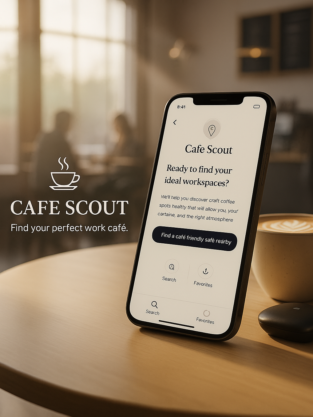 A mobile app that helps remote workers find the perfect café with reliable Wi-Fi, good seating, and the right atmosphere for work.