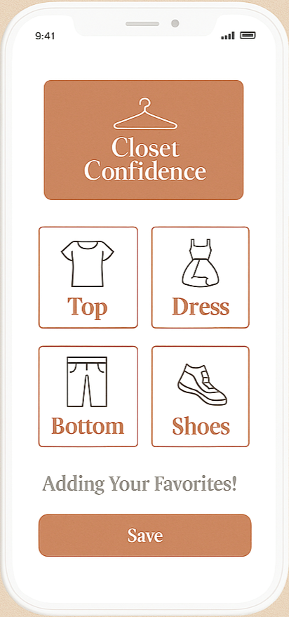 Closet Confidence is a warm, minimal mobile app designed to help busy working women choose outfits quickly and confidently.