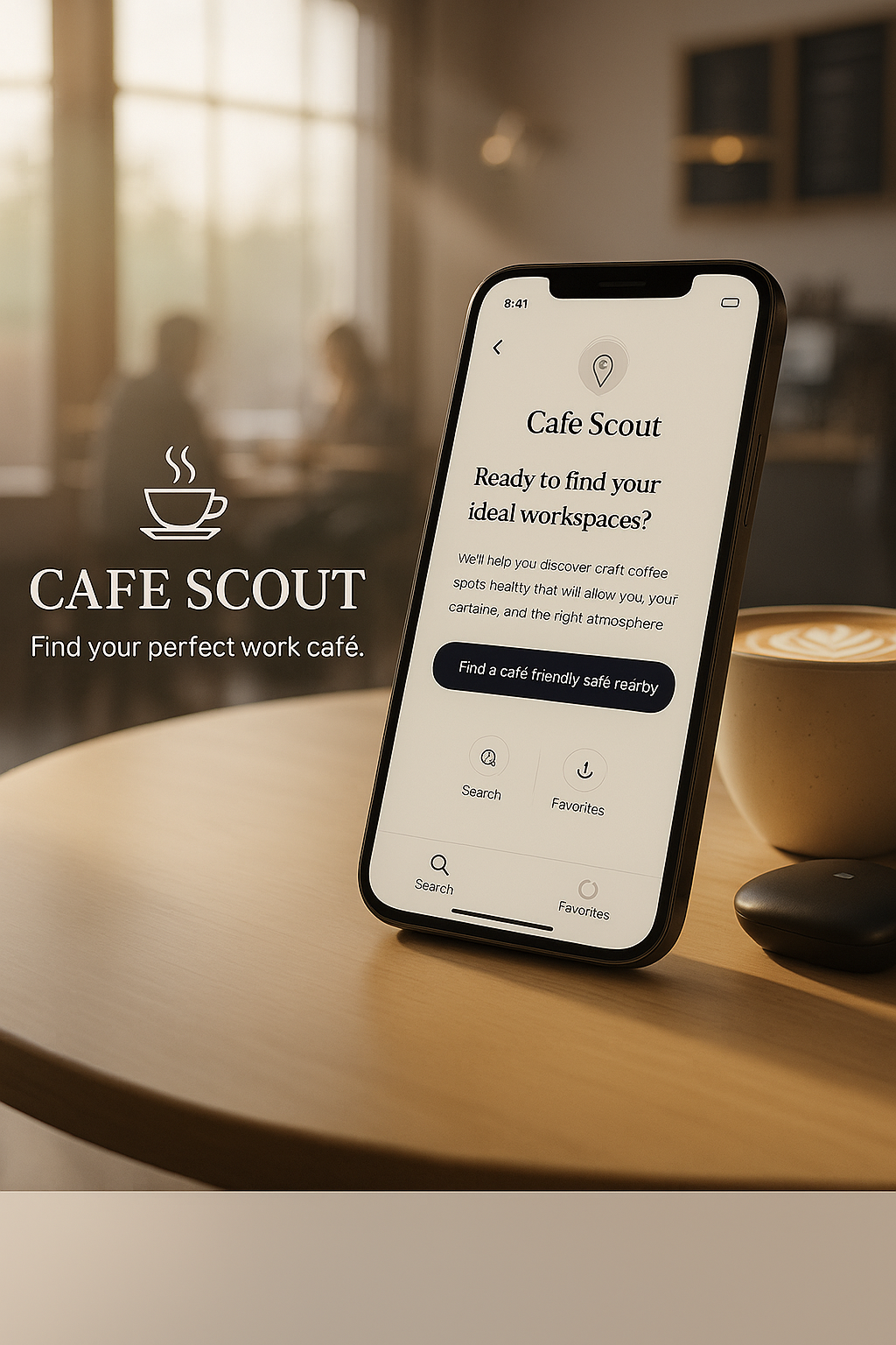 A mobile app that helps remote workers find the perfect café with reliable Wi-Fi, good seating, and the right atmosphere for work.